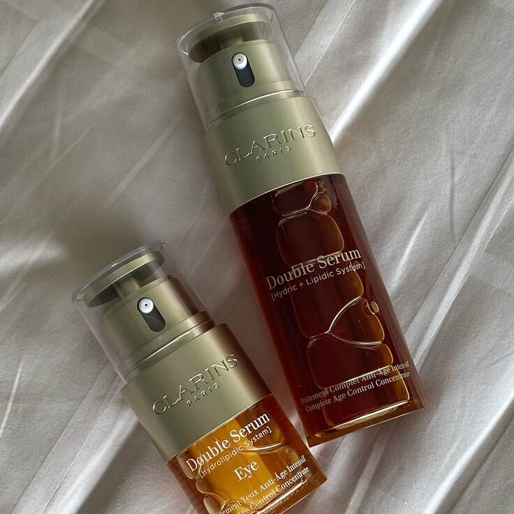 Le sérum Advanced Night Repair se distingue par sa texture légère et soyeuse, qui pénètre instantanément dans la peau sans laisser de résidu gras. À côté, le Double Serum de Clarins offre une texture un peu plus huileuse, tandis que le Genifique de Lancôme reste légèrement plus fluide.